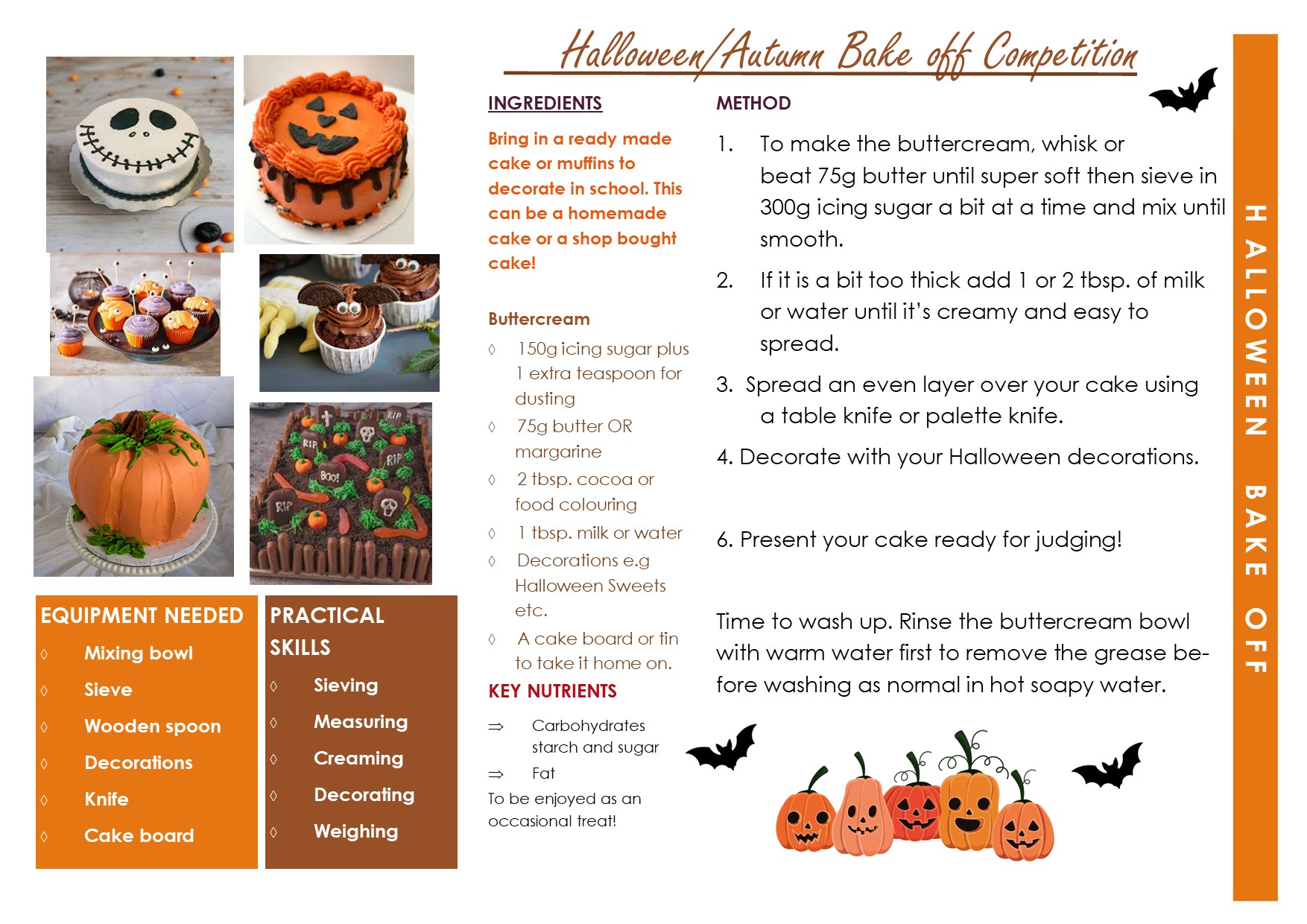Your child will be participating in practical cookery sessions this half term. It is expected that students bring ingredients from home to cook. It is also useful if they have a suitable container, such as a plastic tub, and an apron to protect their school uniform. On some occasions an oven proof dish may be required.