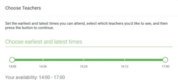 Step 4: Select Availability Drag the sliders at the top of the screen to indicate the earliest and latest you can attend. |