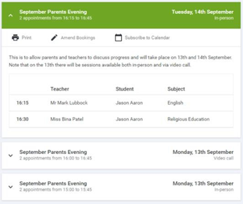 Parents' Evening Booking Instructions